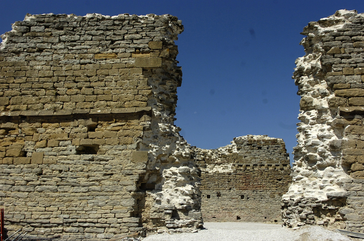 Ia hogeita hamar metroko altuera duen harrizko horma da, piramide formako almenak dituena. Solairu bakoitzak zortzi metroko altuera zuen. Harridura sortzen du oraindik zutik irauteak, egituraren erdia baino gutxiago geratzen denean.