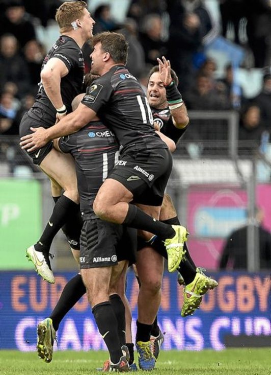 Saracens salvó la honra inglesa y la estadística, que dice que en cuartos los visitantes ganan uno de los cuatro choques. Todo con el tiempo cumplido, cuando el argentino Marcelo Bosch, especialista en distancias largas, enganchó un golpe de castigo que eliminaba a Racing Metro. Los parisinos ya acariciaban sus primeras semifinales –se estrenaban en cuartos– merced a los puntos de Machenaud (11-12).