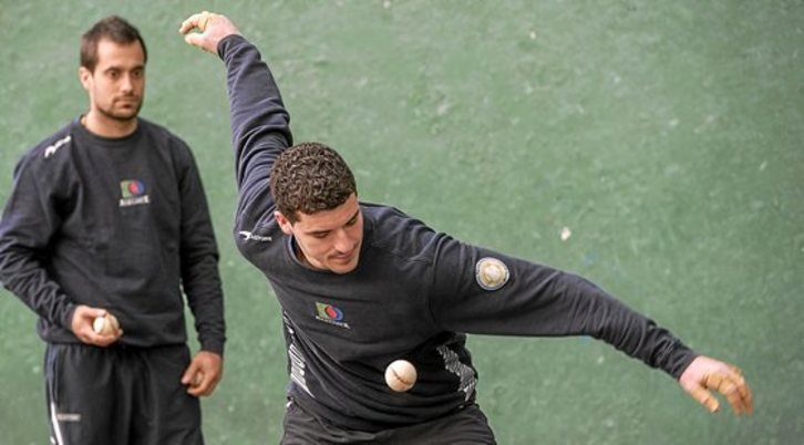 Mientras Aitor Zubieta ha preferido utilizar esta semana para tratarse su mano izquierda –el miércoles por la tarde acudió a la consulta de Pedro García y probablemente vuelva hoy, para empezar a pelotear un poco el fin de semana cerca de casa– sus rivales el día 26, Oinatz Bengoetxea y Álvaro Untoria, se acercaron ayer al Bizkaia de Bilbo para tener una toma de contacto con el escenario de la final.