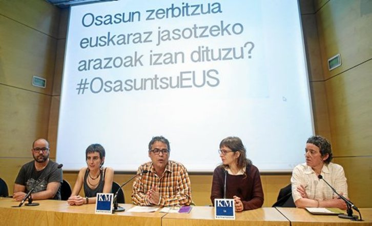 «Kasu honetan, Osakidetzak eta Osasunbideak hartu behar dituzte dagozkien neurriak herritar eta langileen hizkuntza eskubideak bermatzeko», azaldu zuen. Langile elebidunak hartzeko exijitu zien.