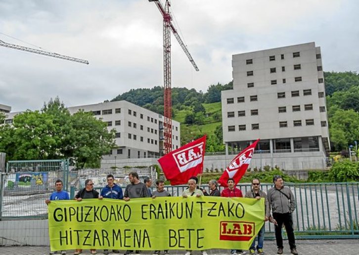LAB se concentró ayer frente a las obras de construcción de las Viviendas de Protección Oficial del barrio Florida de Hernani para denunciar el incumplimiento de las condiciones laborales de los trabajadores y alertar del «riesgo de accidente».
