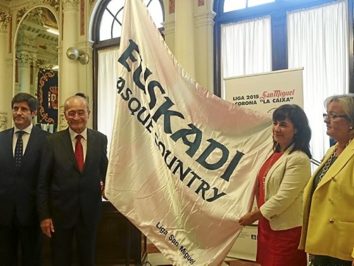 La III Bandera Euskadi Basque Country, que se pondrá en juego este domingo en Málaga y servirá para dar comienzo a una nueva edición de la Liga San Miguel de traineras, fue presentada ayer en la ciudad andaluza. Aunque los pormerores que rodearán el estreno de la competición ya se dieron a conocer en el acto celebrado hace algunos días en Donostia, la cita llevada a cabo en Málaga tuvo el interés añadido de celebrarse el sorteo de tandas para la primera regata, la única que se confecciona mediante ese sistema.