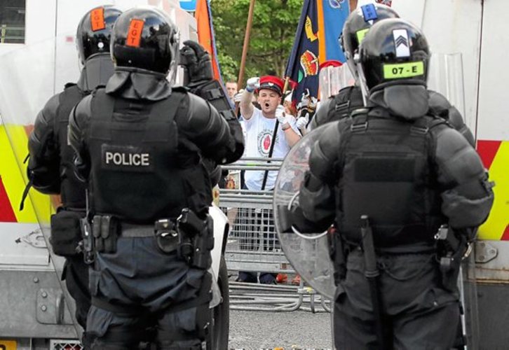 Los disturbios que estallaron durante la marcha anual de la Orden de Orange por Belfast para reclamar el dominio unionista en el norte de Irlanda se saldaron el lunes por la noche con 25 heridos, 24 policías y una adolescente de 16 años.