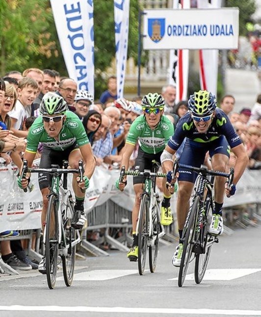 En la bajada solo se quedaron Txurruka, Madrazo e Izagirre, que fueron quienes llegaron juntos a la línea de meta, y allí, el más trabajador de todos, Madrazo, se impuso en el sprint, logrando finalizar el gran trabajo del cuadro navarro, que esta vez fue mejor que el Movistar, que no pudo repetir el triunfo del año pasado.