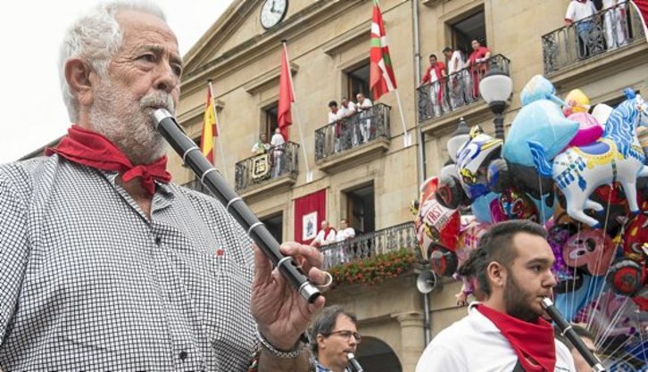 Las fiestas de Tafalla arrancaron ayer con un cohete tirado al alimón por Ignacio Osés (en representación de la coral) y Ramón Esquíroz (fundador del grupo de clarines). De este modo, en la ciudad del Zidakos se mantuvo el patrón que EH Bildu inició en Iruñea de renunciar a que el alcalde o los concejales lancen el cohete y devolver ese honor a los ciudadanos que se han destacado por su labor en favor de la localidad y sus fiestas. Y gesto que se produce pese a que, al igual que en la capital, es la primera vez que esta coalición se hace con la Alcaldía. Además de ello, se colgó una ikurriña en el balcón consistorial, aprovechando una visita institucional de representantes de la CAV.