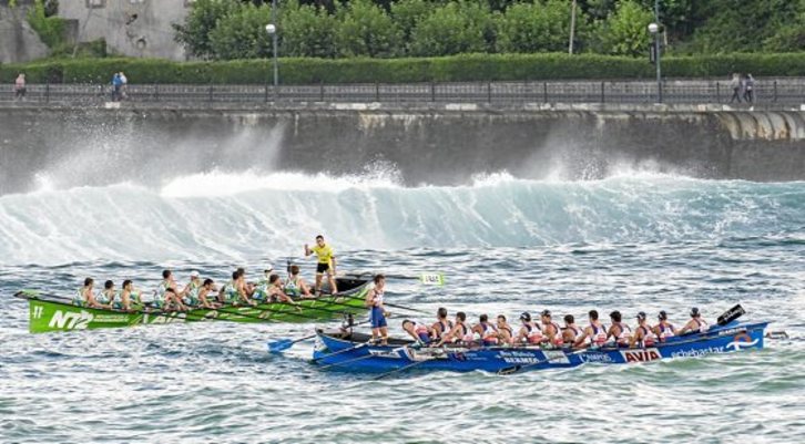 La competición pura y dura mostró que Kaiku salía a por todas en «su» regata, a las órdenes de un Asier Zurinaga hiperactivo. Orio y San Juan eran incapaces de mantener el ritmo de la «Bizkaitarra», mientras que Urdaibai copiaba los tiempos de su «némesis», pero sin llegar al nivel de Hondarribia. El último largo de los de la «Ama Guadalupekoa» fue casi poético, capaces de atrapar cada ola que se les pusiera a tiro, incluyendo una última que los hizo volar a la meta, dejando la regata zarauzrra vista para sentencia.