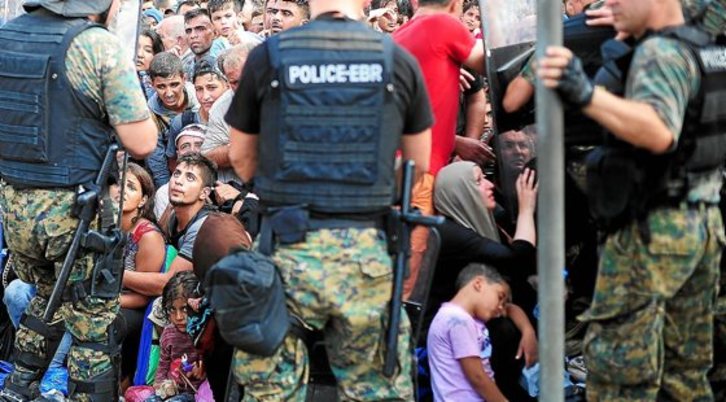 La Policía de Macedonia cerró ayer su frontera con Grecia y utilizó granadas ensordecedoras contra los refugiados, hiriendo a cinco personas. Los hechos se produjeron en una zona fronteriza entre la localidad griega de Eidomeni y la ciudad macedonia de Gevgelija. El Gobierno macedonio, país situado en la ruta balcánica utilizada por los refugiados, decretó el jueves el estado de emergencia, una medida que le permite desplegar a las Fuerzas Armadas en esta zona. Unos 250 refugiados sirios, entre ellos niños y mujeres, lograron cruzar la frontera y se agruparon en la estación de tren de Gevgelija, después de caminar por el bosque durante la noche.GARA