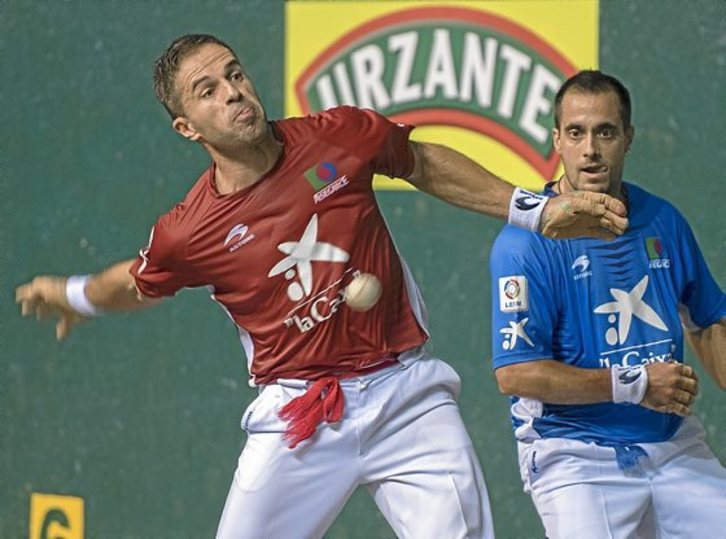 Con todo, la seguridad mostrada por Aimar Olaizola en cada uno de los movimientos y golpeos le permitió ir cogiendo cierta ventaja, mientras que un par de sotamanos que se le escaparon al colchón de arriba fueron minando la confianza del vivo delantero de Leitza.