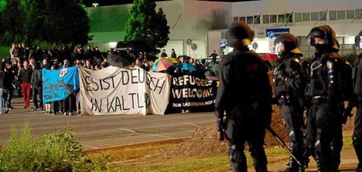 La manifestación en Heidenau fue convocada el viernes ante la llegada de 250 personas que iban a ser alojadas en un edificio desocupado y reconstruido para acoger a los refugiados. Una treintena de jóvenes de extrema derecha, pertenecientes al neonazi NPD, reventó la protesta al grito de “Wir sind das Volk (Somos el Pueblo)”, y se enfrentó a la Policía.