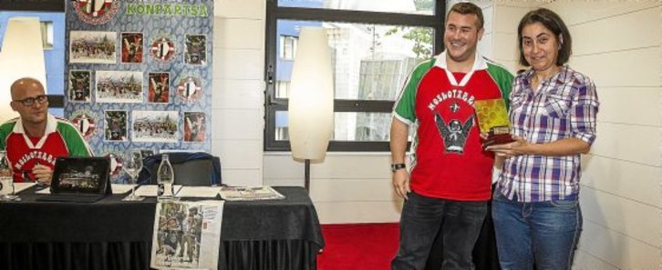 Bilboko Aste Nagusian egindako ekimen sorta saritzen du urtero Moskotarrak konpartsak, eta aurten Argazki Press agentziako Monika del Vallek –irudian– saria jaso du. Jaietako sena hoberen jasotzen duen argazki publikatua saritzen duen Aste Foto arloan accesita lortu du –irudian– eta aitorpena ekarri dion lana ‘‘Berria’’ egunkarian argitaratua izan zen, goiko argazkian mahaian itsatsita dagoen Zaparrada haur konpartsako kidearena. Argazkia: Aritz LOIOLA| ARGAZKI PRESS
