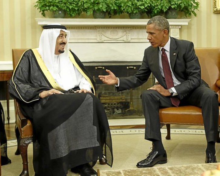 El presidente de EEUU, Barack Obama, tenía previsto recibir ayer (madrugada en Euskal Herria) al nuevo rey saudí, Salman, en su primera visita como soberano de la satrapía petrolífera y sobre el fondo de los desacuerdos en relación a los conflictos de Oriente Medio y el reciente acuerdo con Irán en torno a su programa nuclear.