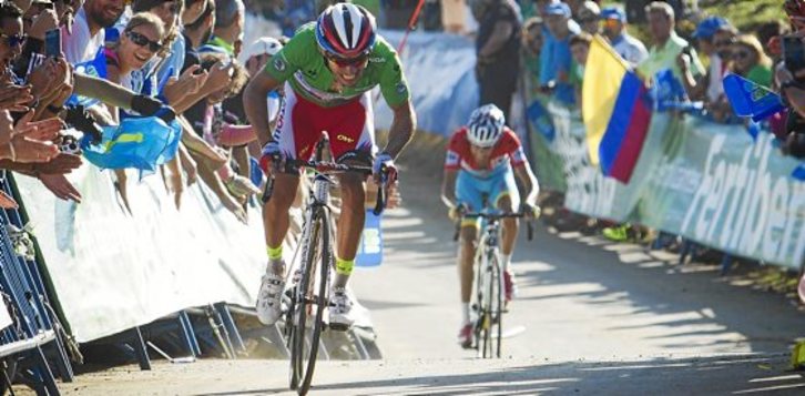 En la dura subida final de 7 kilómetros al 11% Landa marcó el ritmo, pero Aru no pudo atacar. Los más fuertes se limitaron a seguir el ritmo del alavés hasta que Joaquim Rodríguez aceleró en el último kilómetro, lo que solo le sirvió para arrebatar el maillot rojo a Aru por un segundo y para dejar al holandés a 1:51 ante la crono de mañana.