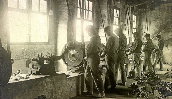 Photomuseum de Zarautz acoge una exposición para dar a conocer el fondo fotográfico de la empresa Patricio Echeverría, recuperada por el fotógrafo Gorka Salmeron. En la muestra se puede visualizar un recorrido desde 1918 hasta pasados los años 60. La foto de la imagen, llamada “Esmerilak”, corresponde al año 1918 y su autor es anónimo. La exposición permanecerá abierta hasta el 22 de noviembre.
