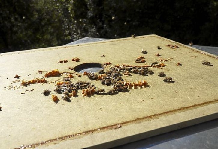 El proceso de extracción de las cajas se repite durante todo el verano. Cuando de nuevo llegue el otoño, será el momento de realizar una operación fundamental para la supervivencia de las abejas, como es el tratamiento contra la plaga de varroa, un ácaro que se extendió desde Filipinas hace un siglo y hoy afecta a las colmenas de todo el mundo. El segundo gran enemigo de las colmenas es la avispa asiática, más reciente en nuestro país y más difícil de combatir que la varroa. La avispa asiática causa graves daños a las abejas, especialmente en los meses de setiembre, octubre y noviembre, pero se da la circunstancia de que afecta más a Bizkaia y Gipuzkoa que a Araba y Nafarroa, por lo que apicultores como Aitor optan por la trashumancia de colmenas.