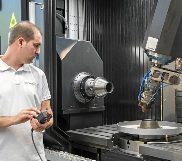 Esta impresora supone una auténtica revolución en los procesos de fabricación conocidos, ya que si hasta ahora de lo que se trataba era de mecanizar un bloque en un torno o fresadora «para quitarle virutas», ahora se crea la pieza desde cero mediante una impresora 3D. Para ello, se utiliza un haz de láser que va fundiendo los polvos metálicos que se le añaden –titanio, acero inoxidable...– a una velocidad de 40 gramos por minuto para ir creando sucesivas capas sólidas hasta conformar la pieza deseada.