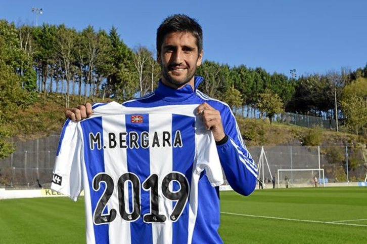 Markel Bergara, cuya renovación de contrato hasta el 30 de junio de 2019 se anunció el pasado martes, se convirtió ayer en el gran protagonista de la jornada en Zubieta. El centrocampista de Elgoibar, que se mostró «muy contento» del acuerdo alcanzado con el club durante la rueda de prensa ofrecida ante los medios, también suscitó la atención de sus compañeros de equipo durante la sesión de entrenamiento.