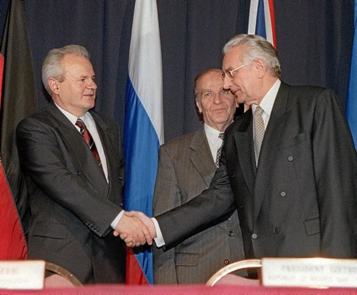 Firmado el 21 de noviembre de 1995 en la base militar estadounidense Wrigth-Patterson, en las afueras de Dayton (estado de Ohio), el acuerdo consagró la división de Bosnia en dos entidades: la Federación Bosnio-Croata (51% del territorio) y la República Srpska (RS, 49%), que disponen de una amplia autonomía y están unidas por endebles instituciones centrales como la Presidencia tripartita.