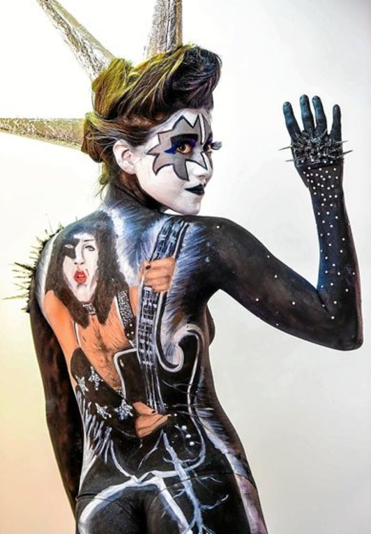 Estudiantes de arte del instituto AIEP de Santiago de Chile organizaron ayer una muestra de «body painting», en la que un centenar de modelos ofrecieron su cuerpo a modo de lienzo para que les pintaran diseños inspirados en iconos de la música popular: Bob Marley, The Beatles, Michael Jackson, Jim Morrison (The Doors), Guns N’ Roses, Kiss...
