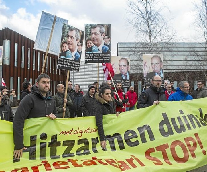 En la protesta los trabajadores exigieron «un mínimo de condiciones laborales» y, en este sentido, denunciaron que Adegi «no tiene ninguna voluntad de negociar el convenio del Metal», ya que para la patronal «es un obstáculo», porque «no pueden llenarse los bolsillos de dinero como ellos quisieran», señaló Jonan Goñi, responsable de la Federación de Industria de LAB.