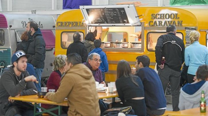 Jatetxe askotarikoen topaleku bilakatu da asteburu honetan Irungo Ficoba aretoa. Kaleko janarien festa ospatzen ari dira bertan eta hogei bat kamioi eta karabanak orotariko eskaintza gastronomiko zabala eskaintzen dute: euskal janaria, mexikarra, italiarra, tapa madrildarrak, krepeak, Mediterraneoko arrozak, hanburgesak, saltxitxa ogitartekoak, bakailaoa, izokina, kroketak... janari karta luzea «Street Food Festival»-eko hau. Juan Carlos RUIZ| ARGZKI PRESS