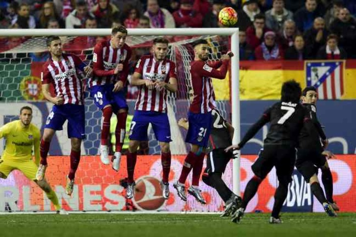 Lejos de arrugarse, los de Valverde siguieron ejerciendo su estajanovista labor de pico y pala ante un rival que no sabía por dónde hincarle el diente a Iraizoz. Un par de balones que ataja Oblak rozando ya el descanso y justo en el descuento, paradón de Iraizoz a chutazo de Correa, que acaba en un saque de esquina que Saúl, en la primera posta, cabecea inapelable a la red. Córner va, córner viene.