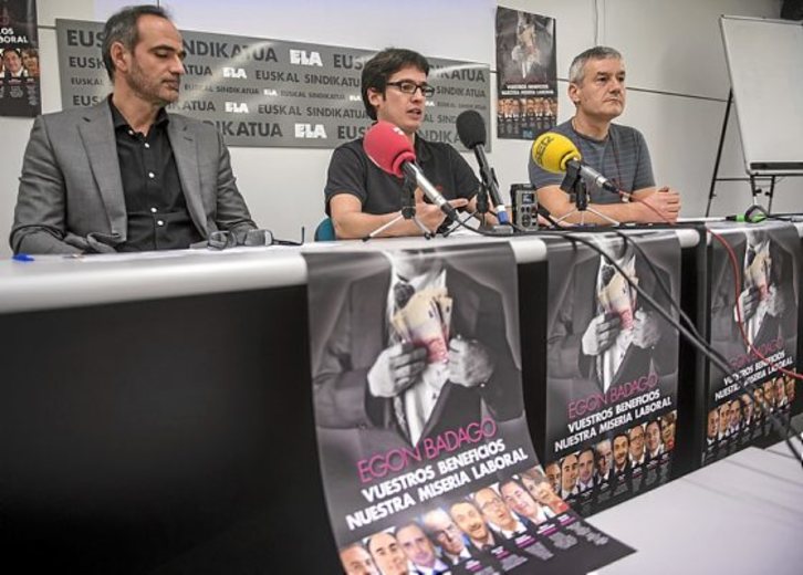 La sentencia del Juzgado de lo Social Nº1 de Iruñea fue dada a conocer ayer por ELA, que presentó la demanda que ahora ha sido estimada. Imanol Paskual, responsable territorial de ELA-Nafarroa; Jokin Arbea, responsable de la Federación de Industria; y el abogado Iñaki Bilbao destacaron que se trata de una sentencia «muy relevante» porque «cuestiona el proceder y la forma de contratación de grandes grupos empresariales».