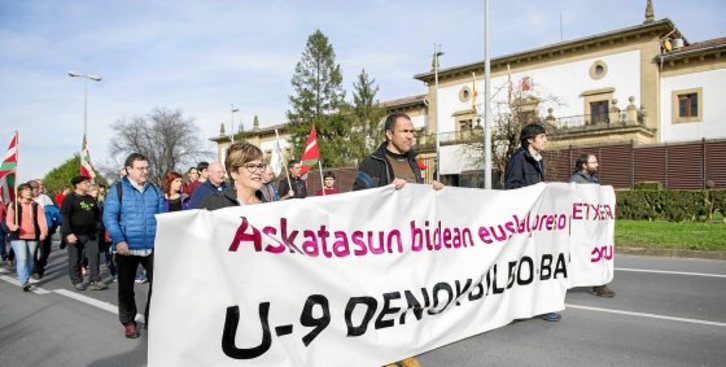Euskal presoen sakabanaketa lehenbailehen amaitzea exijitu zuten atzo Martuteneko espetxearen hormen aurrean Donostiako epaitegietatik eta Hernanitik abiatu ziren ehunka lagunek.