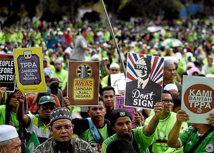 Miles de personas exigieron ayer en Kuala Lumpur al Gobierno de Malasia que no firme el Tratado de Libre Comercio Transpacífico impulsado por EEUU con doce países del Pacífico y que podría servir de modelo a otros en curso, como el de EEUU y la UE. Los manifestantes advirtieron de los riesgos que conlleva su ratificación, como la pérdida de empleos y el aumento de los precios de los medicamentos, además de afectar a la soberanía del país. «Solo ayudará a la gente rica», denunciaron.Manan VATSYAYANA | AFP