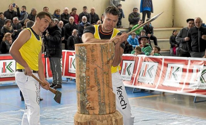 Atzo, ordea, Vicentek eta O’Toolek sekulako maila eman zuten, eta itxura ere paregabea izan zen. Hasteko, 45 ontzakoa zeinek azkarrago moztu neurtu ziren erlojuz kontra, eta O’Toolek sekulako erakustaldia egin zuen, 30 segundoan bota baitzuen. Otaegik, berriz, minutuan moztu zuen. Ikaragarria da horrelako enbor batean minutu erdi bat kentzea, eta baita 30 segundoan botatzea ere.
