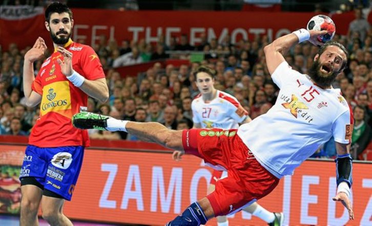 En un día en el que Mikkel Hansen no estuvo precisamente inspirado, tuvo que ser Landin en la portería, Noddesbo desde los seis metros y Damgaard con certeros lanzamientos lejanos quienes sostuvieran a una Dinamarca que supo sufrir durante la mitad del envite y apretar su 6:0 para asfixiar la conexión con Julen Aginagalde, que no fue el de otros encuentros. Sin darse por vencidos en ningún momento, los de Gudmundur Gudmundsson vieron acrecentar sus opciones cuando a falta de un cuarto de hora para el final consiguieron ponerse por primera vez por delante en la contienda (18-19), mientras España sufría un atasco total en el apartado ofensivo.