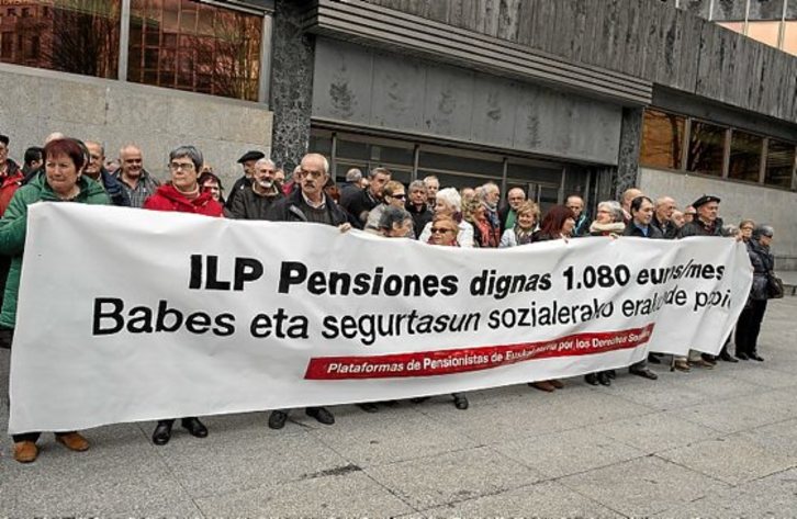 Pentsionistak Martxan se concentró ayer en Bilbo para reivindicar que no haya ninguna pensión por debajo de los 1.080 euros mensuales, para que así mejore su situación económica y la calidad de vida.Monika DEL VALLE | ARGAZKI PRESS