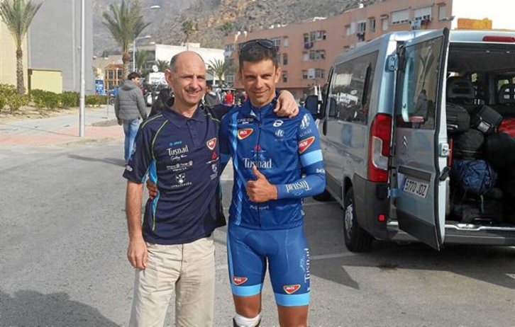 Así ha logrado que su equipo sea invitado a la Volta a la Comunitat Valenciana, en la que el primer día se clasificó último en la crono tras darse un buen golpe en la pierna buena. El jueves llegó antepenúltimo al alto de Fredes y el viernes le obligaron a bajarse de la bicicleta a 40 de meta acusado de haberse subido al coche de Angoitia porque le habían visto quedarse y logró volver como cualquier otro al aprovechar la fila de los coches.
