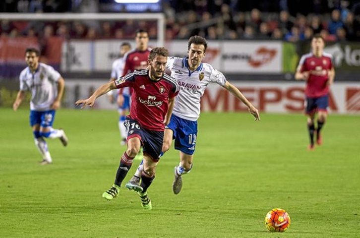 La pena es que todo eso llegó tarde, cuando el Zaragoza ya mandaba en el marcador, tras un primer tiempo equilibrado, en el que a los navarros les costó un rato situarse sobre el césped. Con media docena de novedades –Merino, Otegi, Torres, Olavide, Berenguer y Urko Vera–, una alineación «juvenil», y la vuelta a la defensa de cuatro, Osasuna se vio dominado de inicio por un rival que se hizo con el balón, aunque con el paso de los minutos fue haciéndose con la pelota para equilibrar las cosas, cuando no decantarlas de su lado.