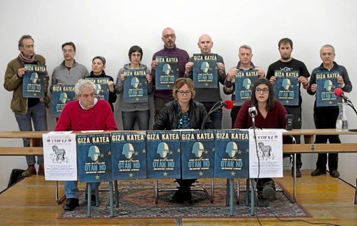 En una rueda de prensa celebrada ayer, los convocantes recordaron que aquel «no» a la OTAN «sigue sin ser respetado». «En Navarra nos niegan el derecho a decidir, 17 leyes recurridas en estos últimos años,y para una vez que nos preguntan algo, hacen caso omiso a lo que hemos votado», criticaron. En el manifiesto dado a conocer se critica la «política criminal» de la OTAN en diferentes puntos del planeta y su presencia en el polígono de Bardenas, «cuyo desmantelamiento –destacan– acaba de ser reclamado por el Parlamento y cuya continuidad a partir de 2018 debe ser rechazada por razones democráticas, ecológicas, pacifistas y de solidaridad internacionalista»