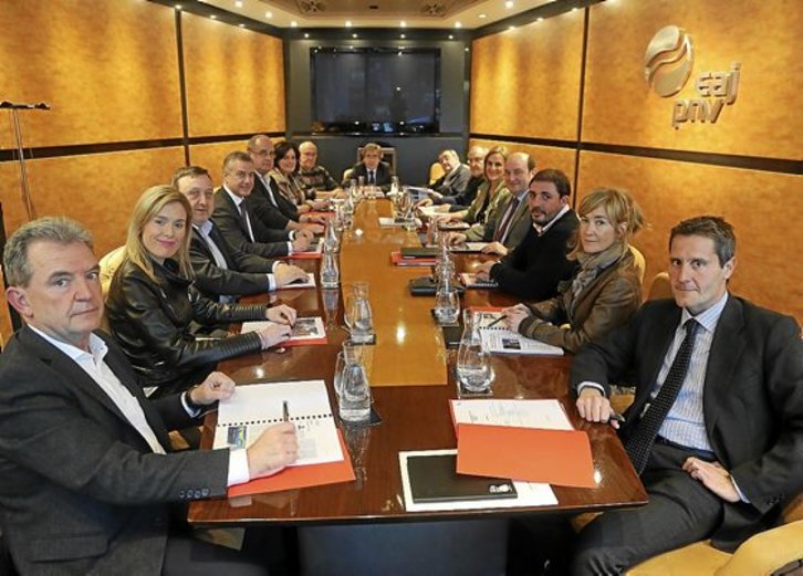 El cierre del acuerdo final sobre la Ley Municipal entre PNV y EH Bildu estaba anoche en manos de la decisión del EBB, después de que durante la tarde delegaciones de ambas formaciones hubieran mantenido una reunión en la que ultimaron redacciones. Por la mañana, el portavoz parlamentario de los jeltzales, Joseba Egibar, conocedor de la propuesta de la coalición independentista, aseguró en una entrevista radiofónica que «se puede dar por hecha su aprobación».
