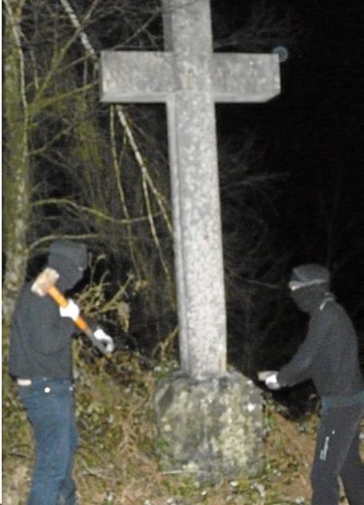 Ezezagun batzuek Isuskitza mendian Francoren alde borrokatu zirenak gogoratzeko altxatutako gurutzeak hondatu dituzte. Bandera espainola ere erre dute lekuan bertan. Ohar batean, sabotajea Aberri Egunaren harira egin dutela azaldu dute, «borroka eguna ere badelako».GARA