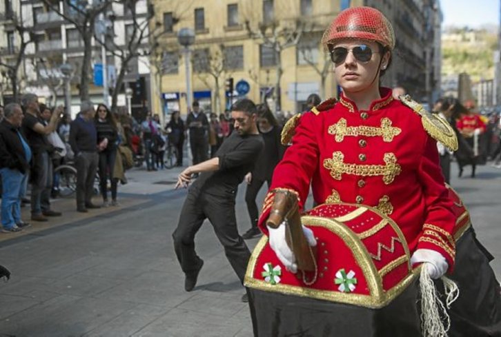 El Antzoki Zaharra albergó desde primera hora un maratón de cine antimilitarista. El espectáculo callejero antibelicista de danza y música “Aldarri” animó al mediodía el centro urbano y fue una de las propuestas más originales en su crítica de las guerras mezclando las danzas tradicionales del grupo Goizalde con sonidos contemporáneos y oscuras coreografías de muerte.