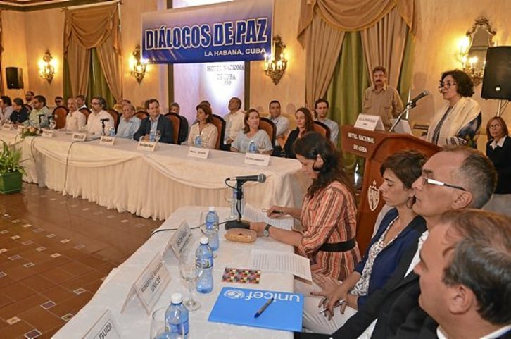 Las delegaciones del Gobierno colombiano y las FARC-EP en la mesa de conversaciones de La Habana han logrado un nuevo e importante acuerdo después de que el pasado jueves anunciaran un conjunto de medidas jurídicas para blindar el Acuerdo Civil. En un acto conjunto celebrado en la capital cubana el lunes por la tarde (medianoche en Euskal Herria), al que también asistió la representante especial del secretario general de la ONU para la Cuestión de los Niños y los Conflictos Armados, Leila Zerrougui, Gobierno y guerrilla anunciaron la salida paulatina de los campamentos de los menores de 15 años y la elaboración de una hoja de ruta para quienes tengan entre 15 y 18 años.