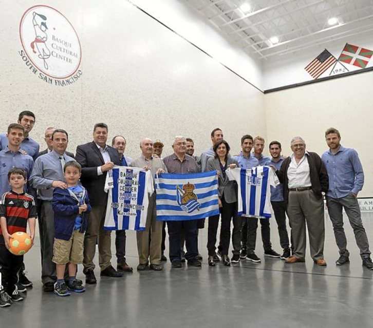 La plantilla txuriudin, por su parte, sigue disfrutando de la gira por los Estados Unidos, en la que alternan dos amistosos con actos publicitarios. Entre ellos una visita a la Euskal Etxea de San Francisco, en la que incluso jugaron a pelota en su frontón.