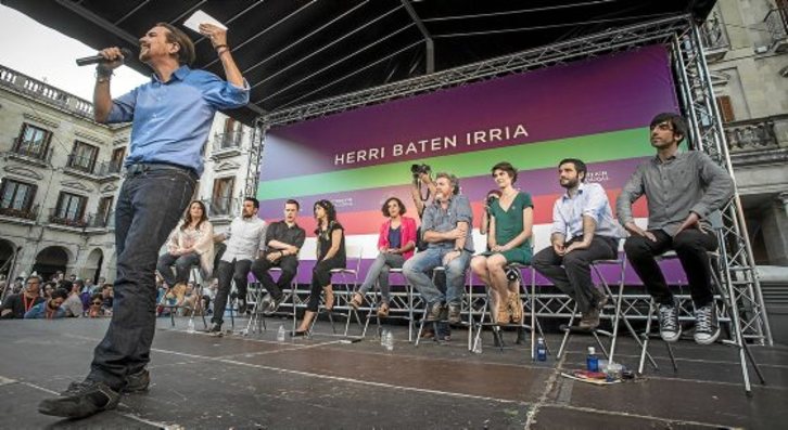 La alusión de Nagua Alba al derecho a decidir levantó los aplausos de la concurrencia, que también ovacionó con entusiasmo su mención por parte del candidato Pablo Iglesias. La secretaria general de la CAV ya lo había presentado como «el único líder de un partido estatal que defiende a Euskadi aquí y en Andalucía», lo que le dejaba parte del camino ya recorrido.