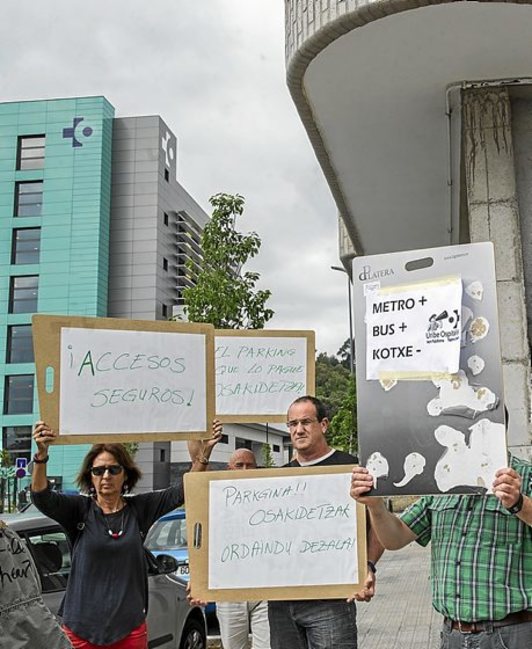 Además, una treintena de integrante de la plataforma ciudadana Uribe Ospitalea también se manifestaron para pedir accesos adecuados y «elegidos democráticamente por la población», la mejora del transporte público, y que la inversión de cinco millones de euros costeada por el Ayuntamiento para construir un aparcamiento junto al hospital la abone Gobierno autonómico.
