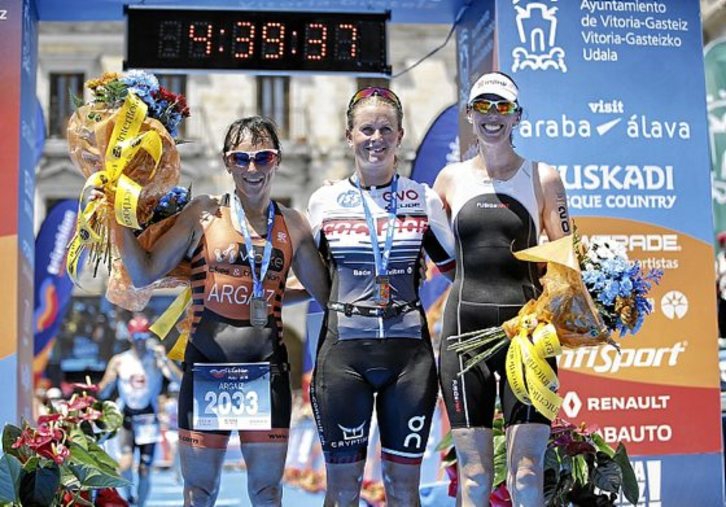En media distancia, Fidalgo necesitó 3:57:56 para remontar desde la quinta plaza e imponerse en la carrera a pie a Pablo Dapena (3:59:40) y al tolosarra Aimar Agirresarobe (4:06:39). Schaerer (4:28:23) superó a Aintzane Argaiz (4:29:43) y a la australiana Sarah Lester (4:37:12).