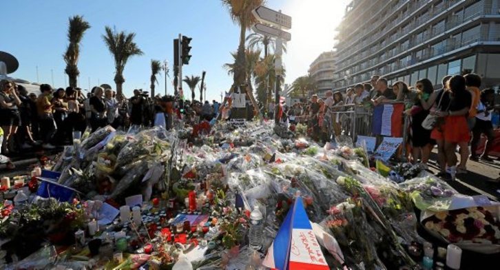 Durante la jornada de ayer, se abrieron los accesos peatonales al céntrico paseo de los Ingleses de Niza, donde se depositaron numerosos ramos de flores y velas para recordar a los fallecidos en el ataque del jueves.