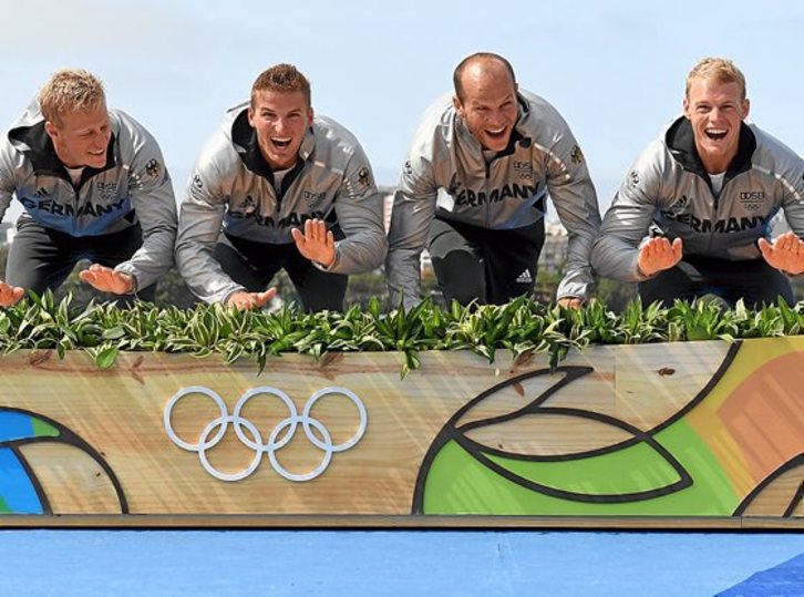 Por delante, los alemanes celebraban su triunfo con un registro de 3:02.143 después de liderar la regata desde el inicio de la prueba. Max Rendschmidt, Tom Liebscher, Max Hoff y Marcus Gross tenían cuentas pendientes para su selección, ya que en Londres 2012 se quedaron con la medalla de chocolate, cuartos, superados entonces por los checos, que fueron bronce.