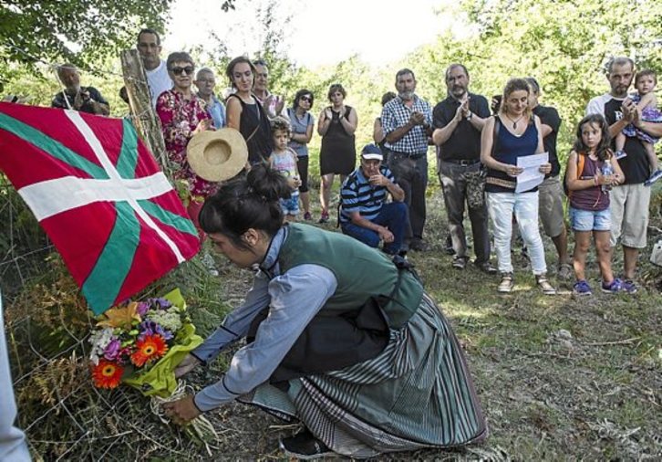 Hace casi 80 años, el 30 de agosto de 1936, Juana Josefa Goñi, embarazada, junto a sus seis hijos desapareció en Gaztelu y según los indicios existentes, fueron arrojados a la sima de Legarrea todos excepto el mayor de los hijos, de 18 años. Ayer un acto tuvo lugar en las inmediaciones donde se cree se encuentran los cuerpos de esta familia y donde el año pasado se colocó una placa conmemorativa.