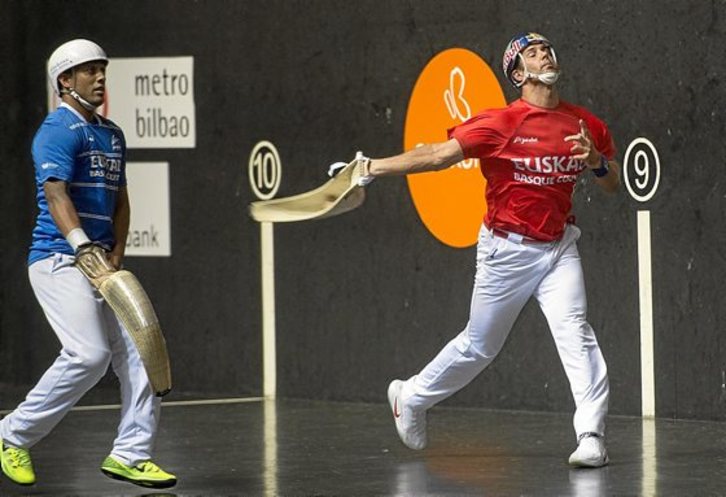 Jean Olharan e Iñaki Osa Goikoetxea jugarán mañana en el Bizkaia de Bilbo la final del Individual después de deshacerse de Mikel Egiguren y Erik Hormaetxea en dos sets. Eso sí, el triunfo del delantero de Pau fue bastante más holgado que el del puntista más laureado de los últimos tiempos, que podrá luchar por su decimoprimera txapela, tras haber sabido sufrir ante un Erik Hormaetxea que le puso las cosas muy difíciles.