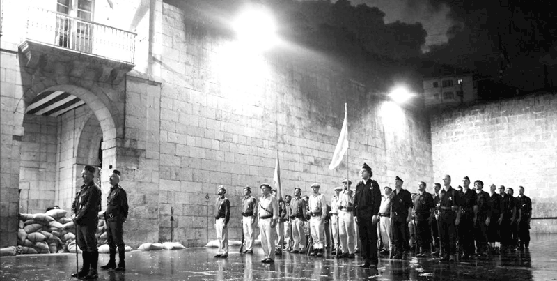 El paso marcial de la Falange, el Requeté y el Ejército sublevado volvió a ensordecer las calles de Elgoibar el pasado fin de semana, tal como ocurrió aquel fatídico 21 de setiembre de 1936 en el que las tropas fascistas tomaron la localidad guipuzcoana.