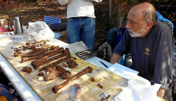 Las labores en la sima de Legarrea comenzaron ayer bien temprano. El grupo de arqueólogos y antropólogos forenses de Aranzadi trabajó hasta las 15.00. Salieron bastante tristes, pensando que habían encontrado los huesos de los seis hijos de la familia Sagardia-Goñi que fueron arrojados a un profundo agujero de 50 metros (el equivalente a un edificio de veinte plantas) hace ya 80 años, pero que faltaban los restos de la madre, Juana Joseba Goñi Sagardia.
