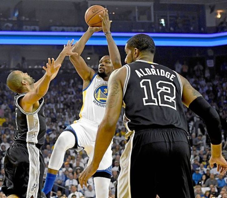 Porque Durant debutó con 27 puntos, algo menos que los 35 de Kahwi Leonard, auténtico motor de los texanos junto a los 26 tantos y 14 rebotes de Lamarcus Aldridge. Pese a la retirada de Tim Duncan, los Spurs barrían a unos Warriors muy descoordinados. El propio Curry, pese a anotar 26 puntos, se notó incómodo. Con el duelo ya sentenciado, el exbaskonista Davis Bertans debutó en la NBA y aportó cinco tantos.
