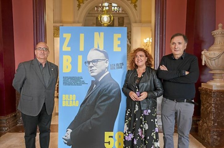 La concejala de Cultura del Ayuntamiento de Bilbo, Nekane Alonso, junto al director del festival, Ernesto del Río, y el programador del mismo, Luis Eguiraun, presentaron los aspectos más destacados de Zinebi 58, que abrirá sus puertas en el bilbaino teatro Arriaga el próximo 18 de noviembre a las 20.00 horas con la entrega del Mikeldi de Honor al director, guionista, actor y crítico cinematográfico Jaime Chávarri. Esta sesión inaugural se completará con la proyección de los cortometrajes vascos a concurso dentro de la sección oficial del festival.